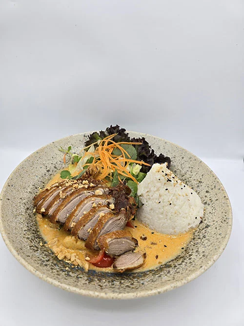 Hũhnerfleisch mit Marktgemũse in roter Curry Sauce